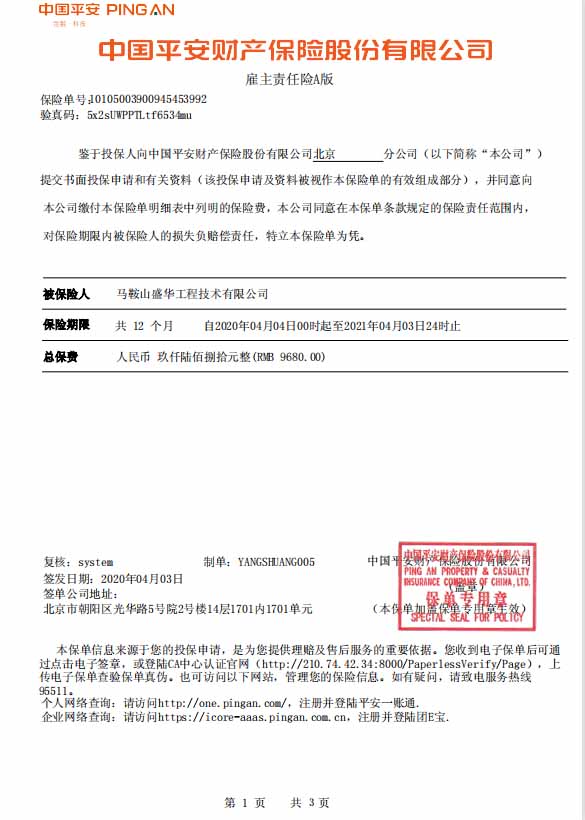 Maanshan ShengHua Engineering Technology CO.,LTD